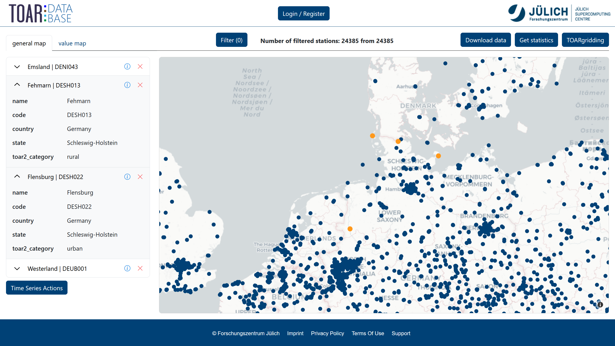 There you will see more metadata about the station, such as the name, station code, country and state, as well as the toar2_category. The toar2_category is a classification of the type of area of the station through a machine learning algorithm.